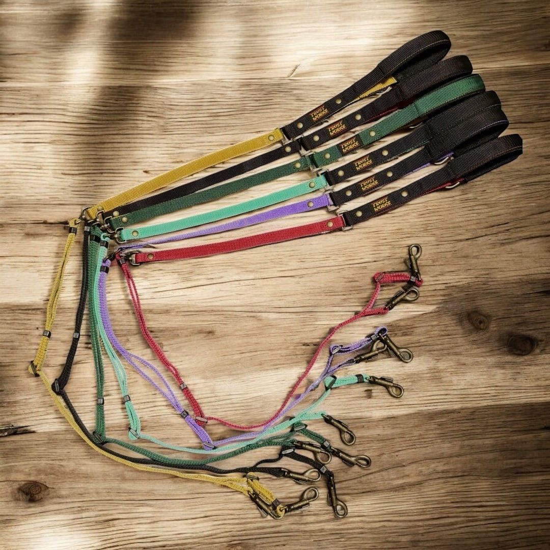 15mm巾の軽量リードで23kgまでの愛犬と安心して歩ける耐久性。 首輪とハーネスの両方を1本のリードで繋ぐ事ができる保護犬や引っ張りの強い子などの逸走対策に役立つY字リード。 中間部分が回転することでリードがねじれにくい構造になっています。 110cm〜140cmの長さ調整が可能。 各所が2トーンカラーになっている為、飽きのこないデザイン。 メインハンドルにリングが付属している為、小物を掛けたりショルダーパーツ(別売)を付けてショルダーリードとしても使用可能。 ※サブハンドル無し #首輪 #小型犬 #中型犬 #大型犬 #ハンドメイド犬具 #保護犬 #リード #キャンプ #アウトドア犬 #犬用品 #犬好きさんと繋がりたい #ドッグギア #犬の首輪 #犬のリード #散歩グッズ #逸走対策