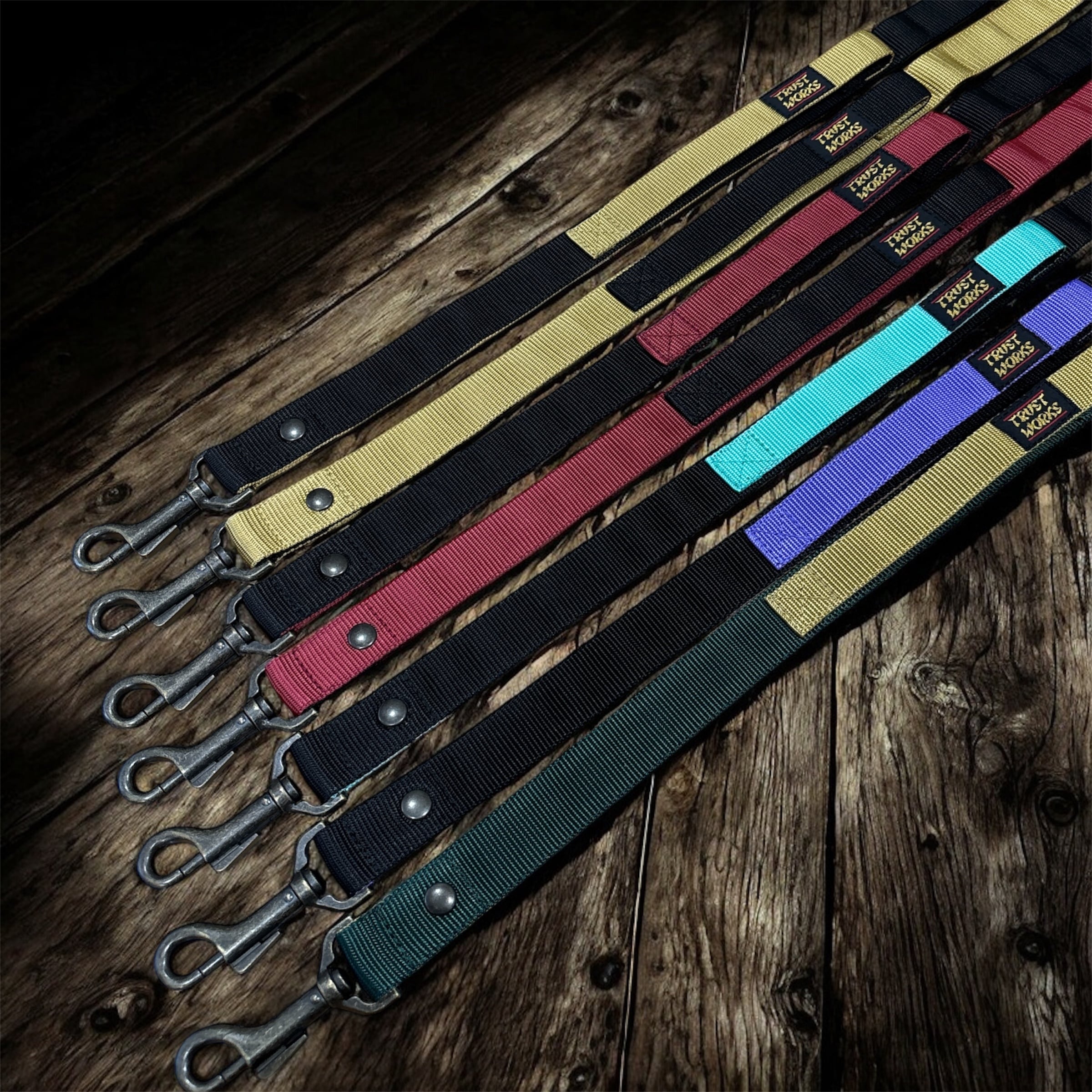 25mm巾のベルトを使用した中型犬〜大型犬(〜35kg)対応のシングルリード。 110cm〜140cmで長さ調整ができるアジャスター付き。 メインハンドル部分が回転することにより、捻れにくい構造。他にもハンドルにリングが付属している為、小物を掛けたりショルダーパーツ(別売)を付けてショルダーリードとしても使用が可能です。 サブハンドルが付いているため、人混みや車通りが多い場所などではショートリードとしても扱うことができます。 表裏の配色が異なるため飽きのこない、またキャンプなどのアクティビティ好きな愛犬家に好まれるデザインとなっています。 ※すべてのパーツは日本製を使用しています。